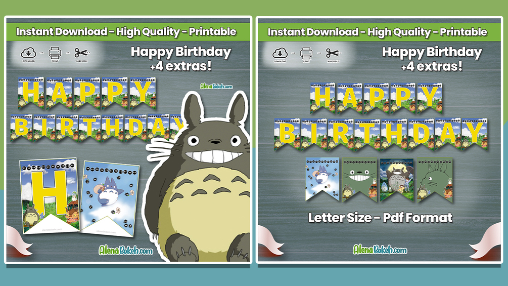 Totoro Happy Birthday Banner digital download includes: